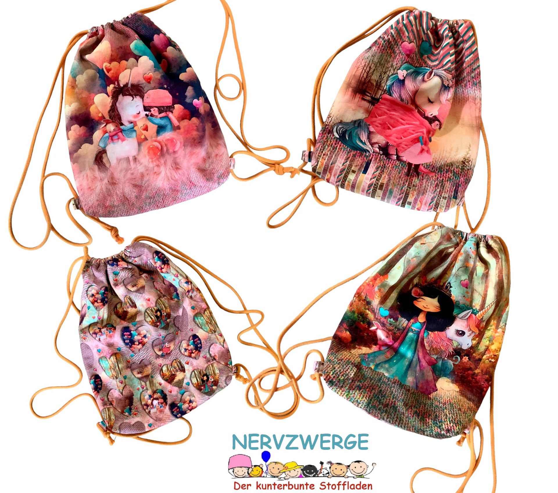 Kann als Wenderucksack genäht werden oder mit passendem Unistoff können je 2 Rucksäcke genäht werden.