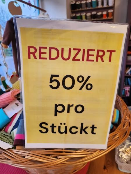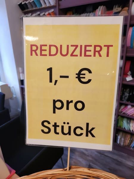 Ab einem Einkauf von 40cm gibt es einen Aufnäher und ein Bügelbild gratis dazu.